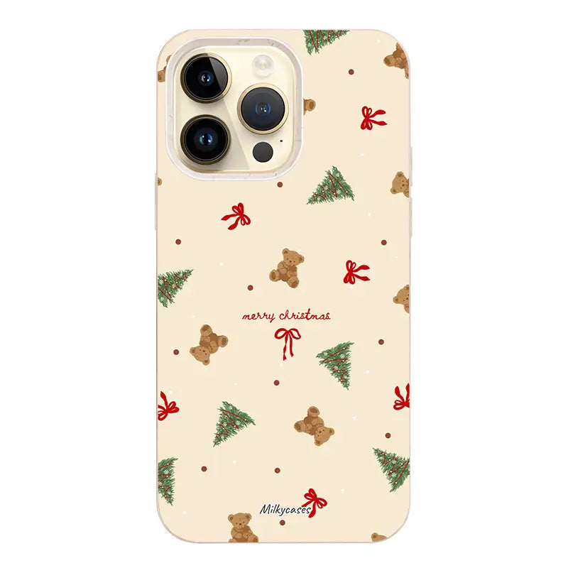 Bring peak holiday cozy to your phone. Tinsel Teddy scatters gingerbread-tone bears, candy-red ribbons, and twinkly Christmas trees across a warm cookie-beige backdrop, like gift wrap fresh from under the tree. The tiny “merry Christmas” script at center feels like a handwritten tag on your favorite present, while soft snow speckles add just the right sparkle. Sweet, cheerful, and ready for every cocoa run and carol night, this design pairs perfectly with your winter fits and makes an adorable gift for your bestie.